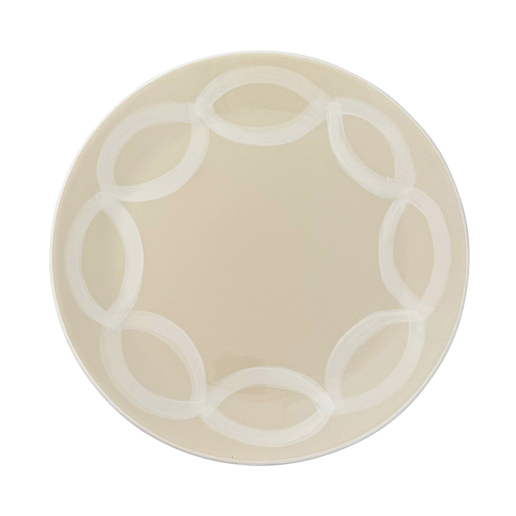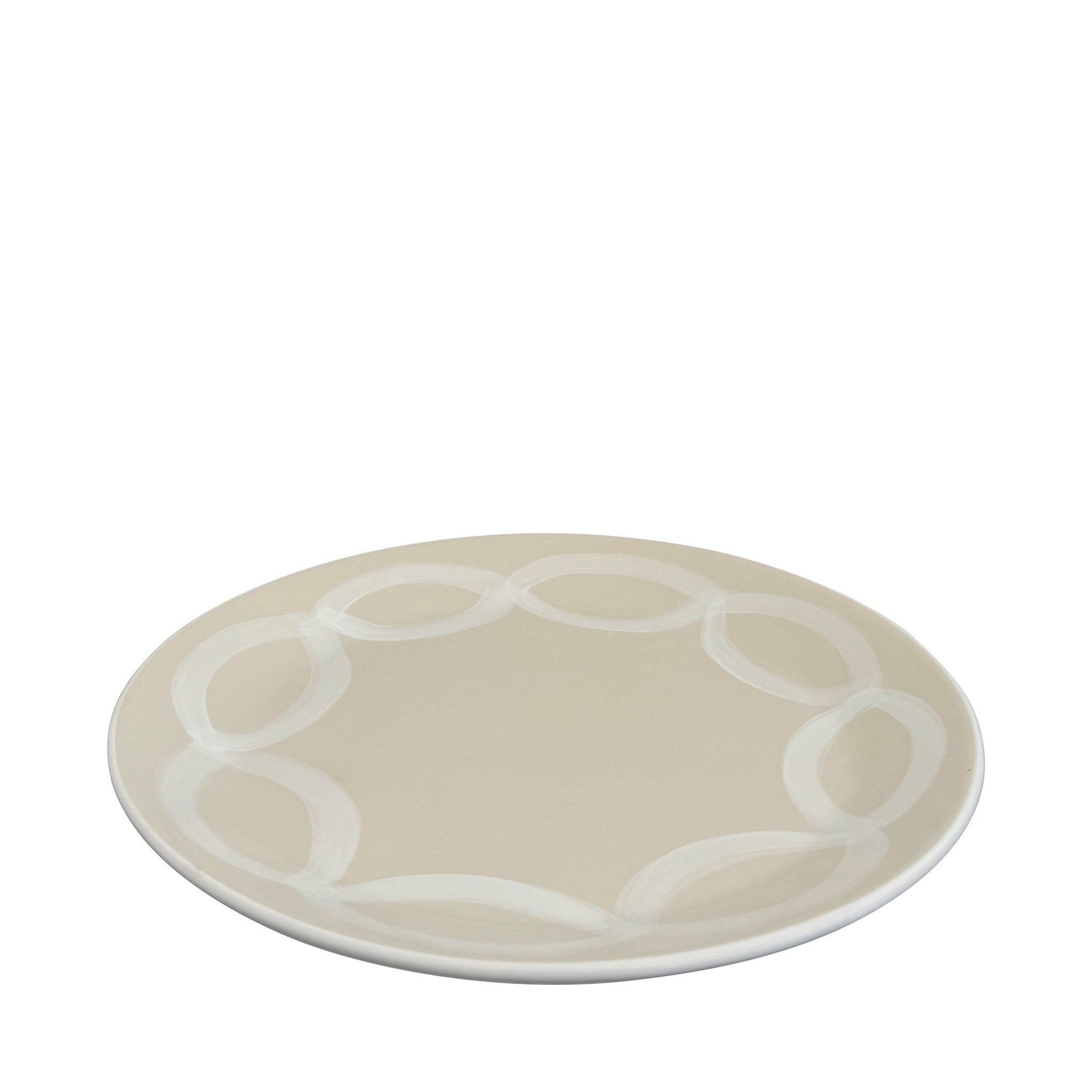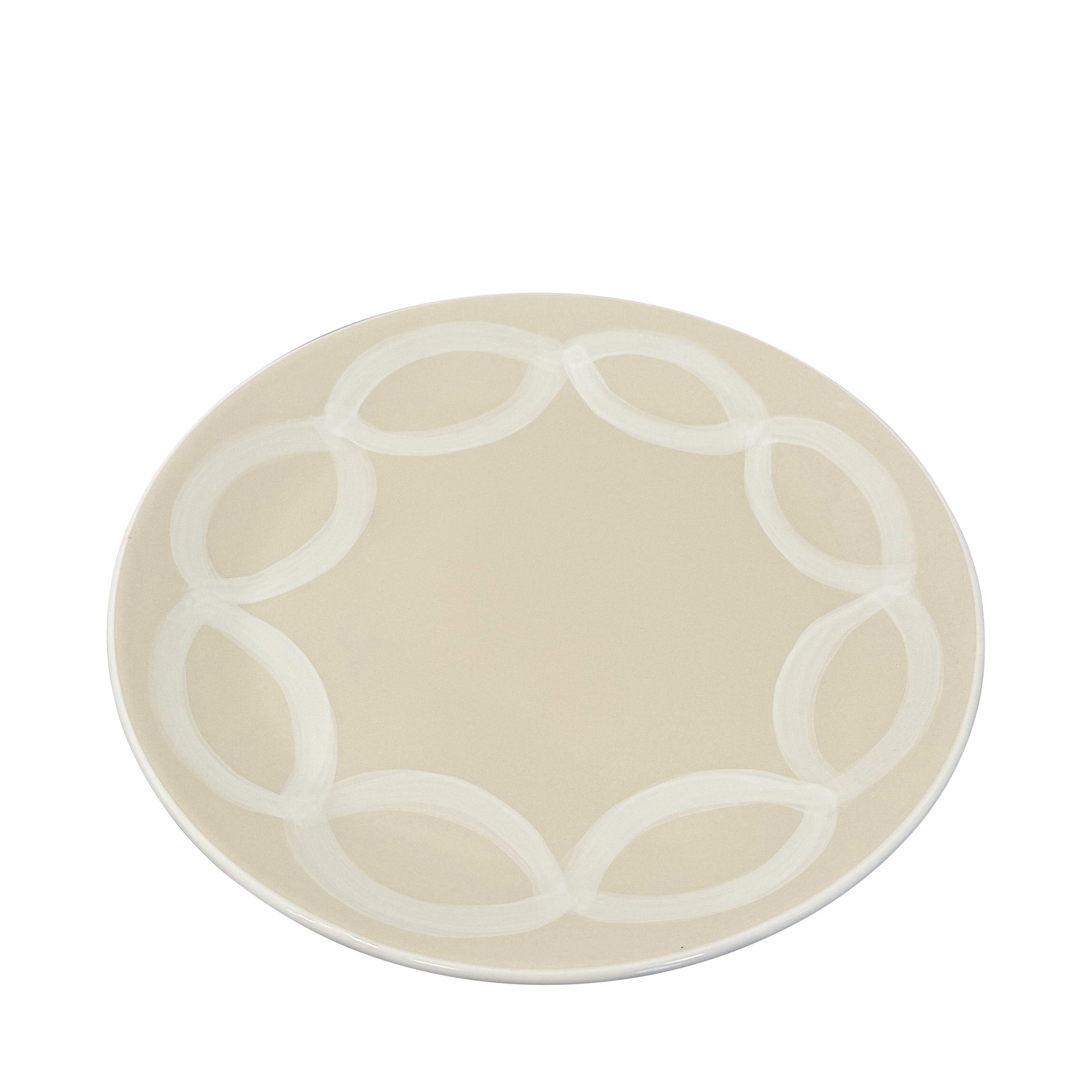 The Eliá ceramic main plate set has been hand-painted by artisans with a painterly, bold olive form. The cream and white palette brings an understated elegance to entertaining occasions. Set of 4.