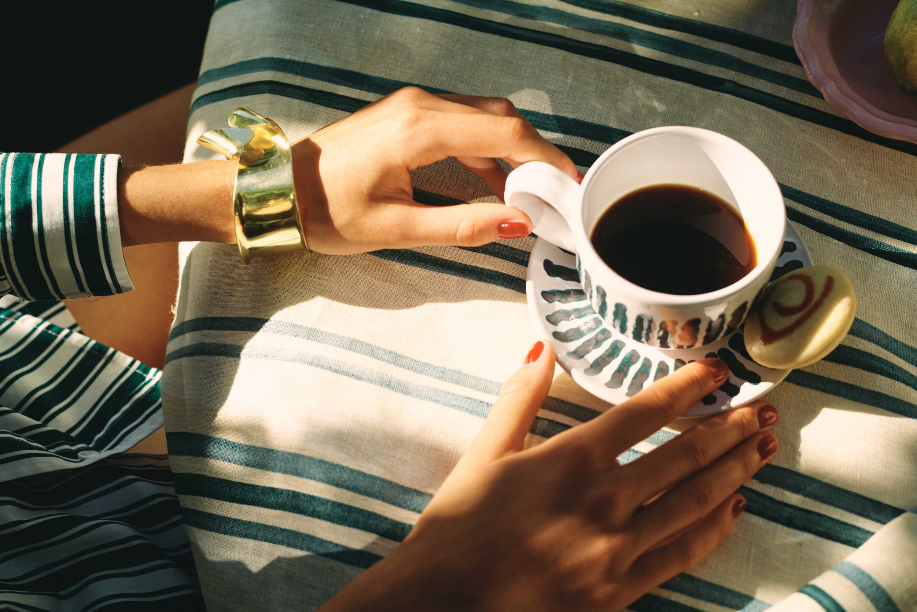 Lido Ceramic Coffee Cup and Saucer, Cream and Green