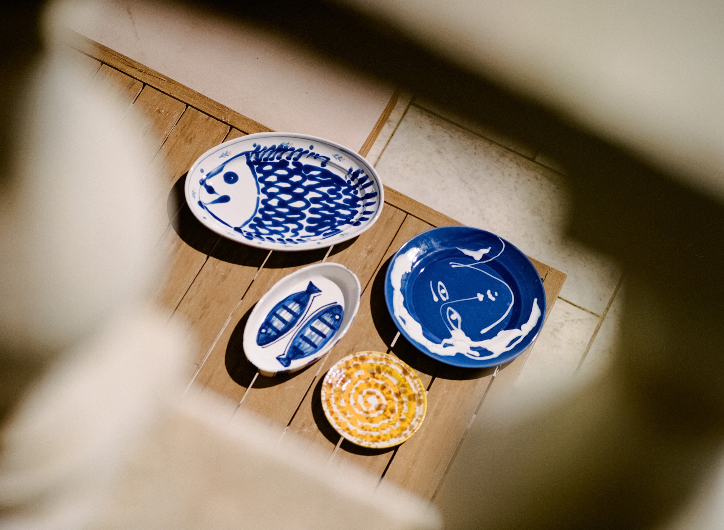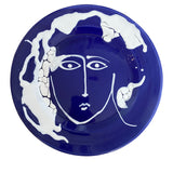 The ceramic large serving face plate is hand painted and made in Puglia, Italy. Inspired by a dazzling Mediterranean blue sea palette, each piece brings its own personality and talk-ability to the entertainers table with their expressive faces.