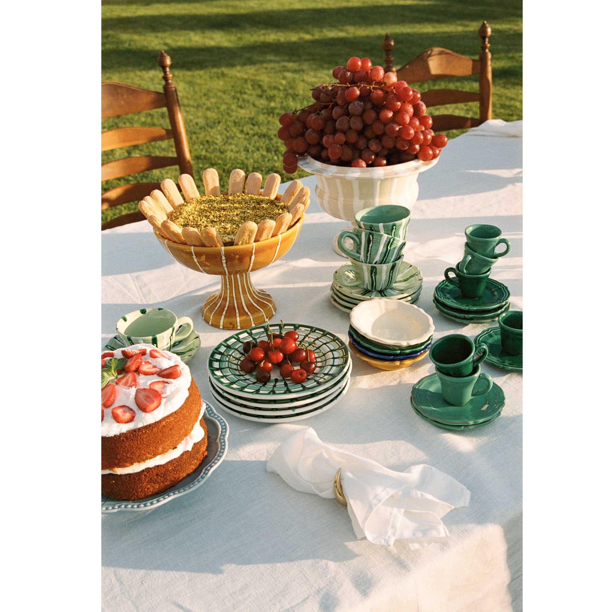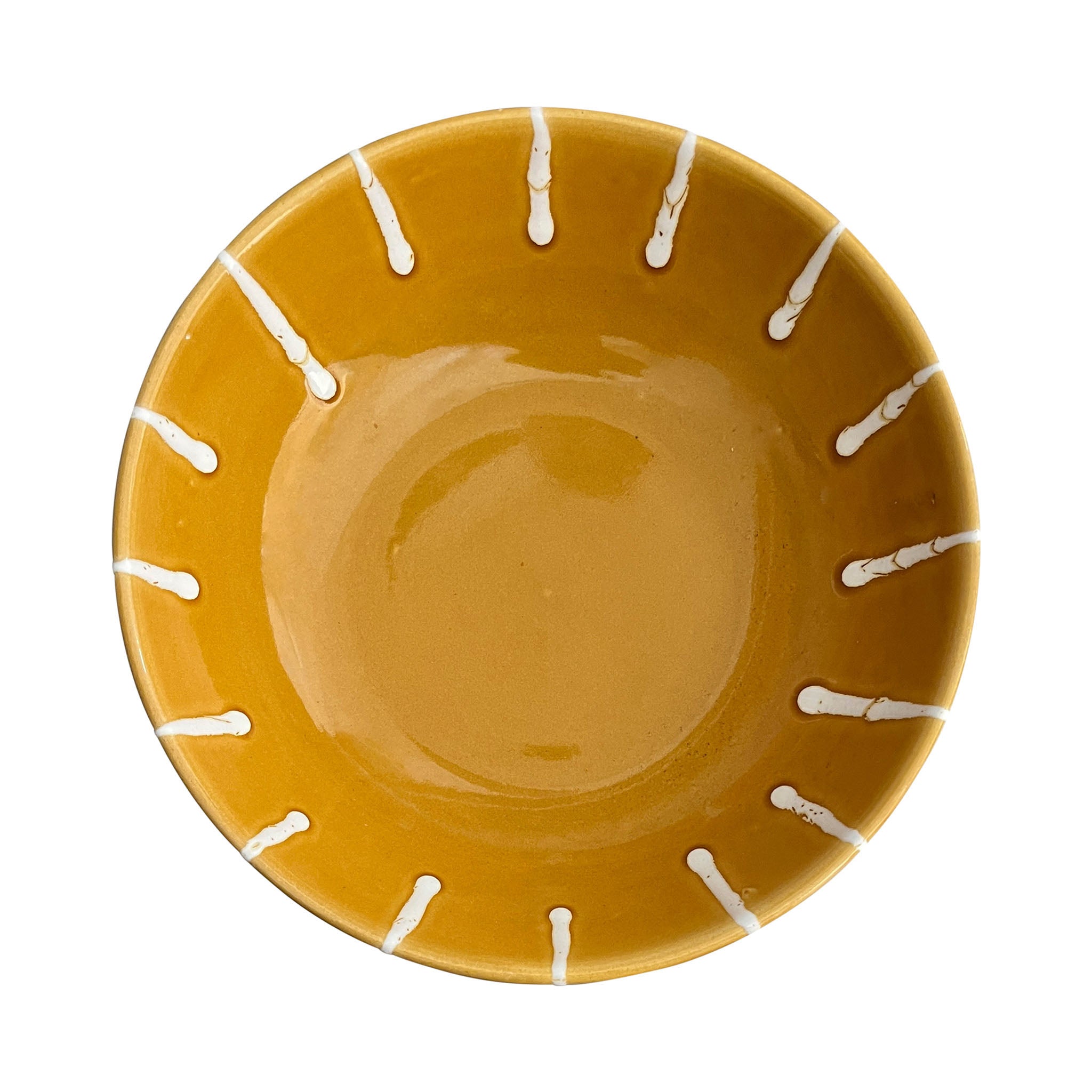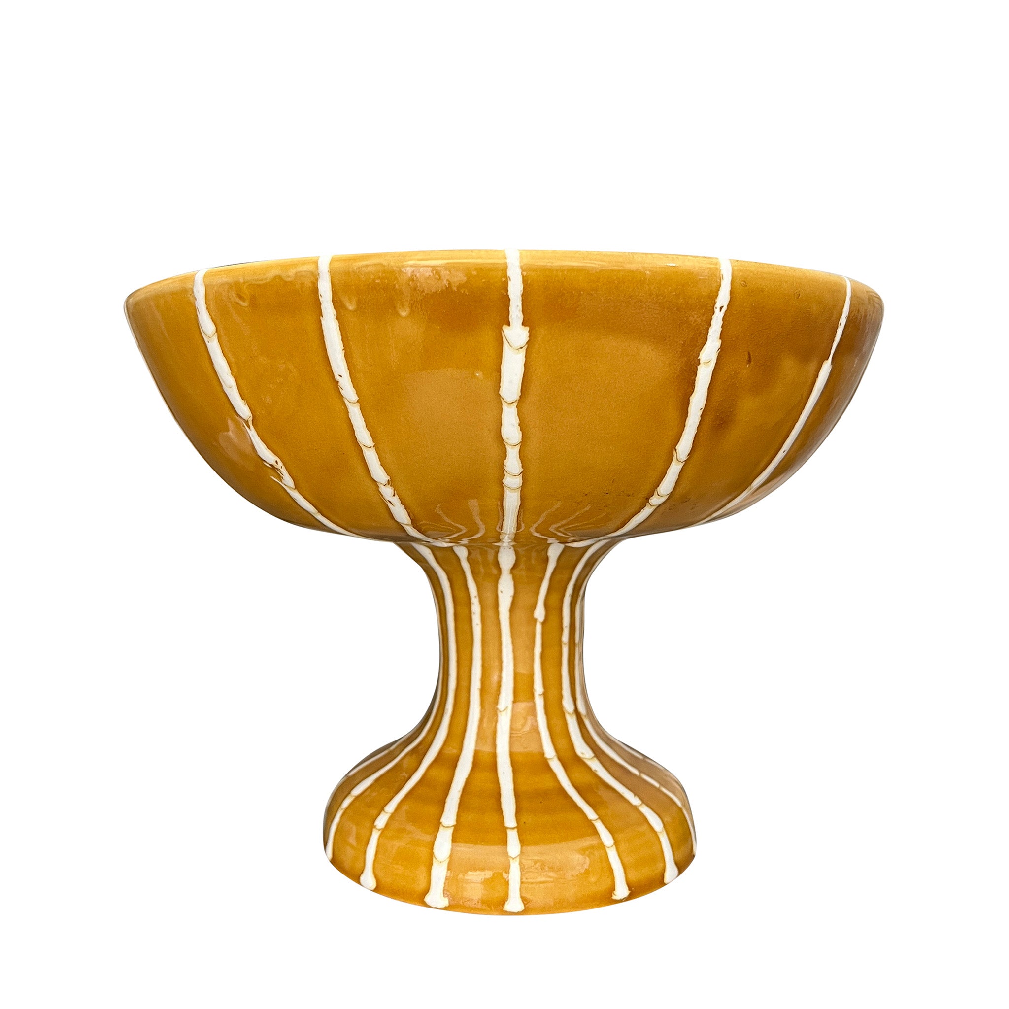 The Lido Ceramic Fruit Bowl Stand in honey has been hand painted and made in Puglia, Italy. Inspired by the alluring amber tones of a glowing honey pot that adorns a Mediterranean breakfast table, this piece has been designed to serve courses in many entertaining settings and will sit beautifully atop a kitchen bench or shelf within the home.