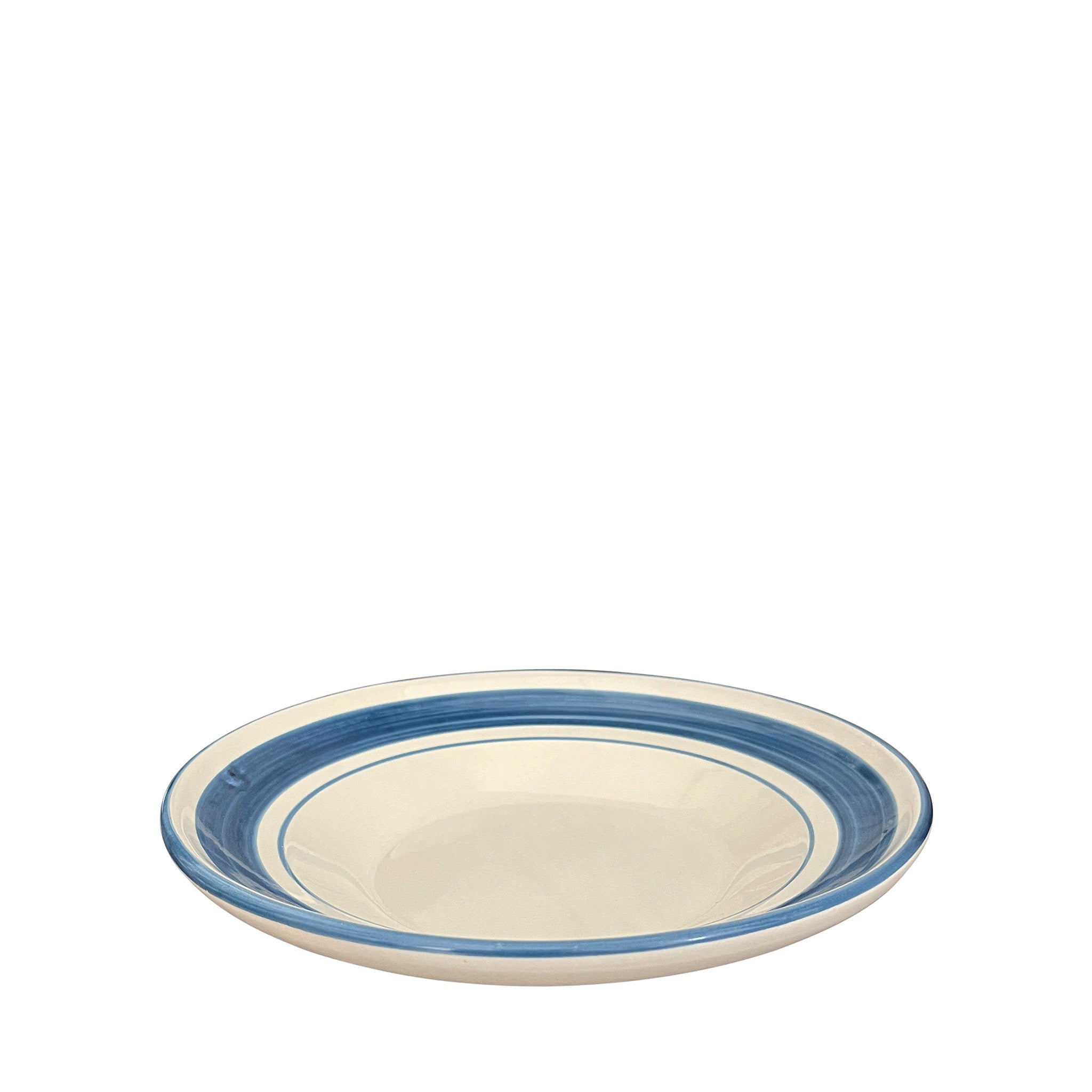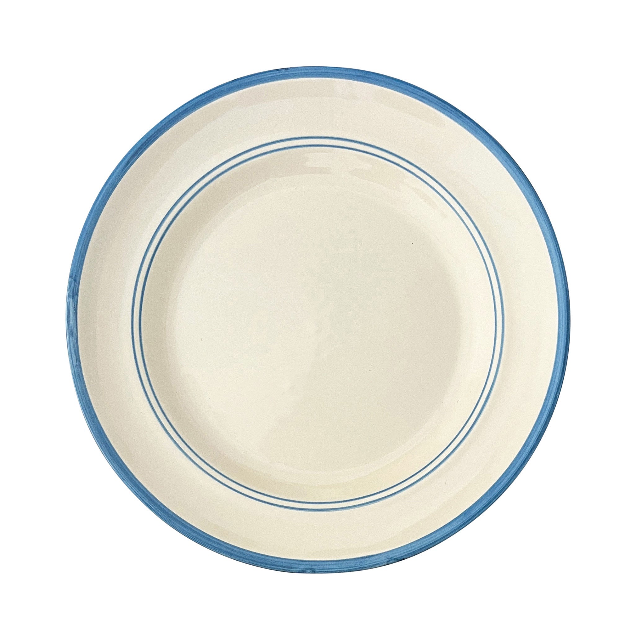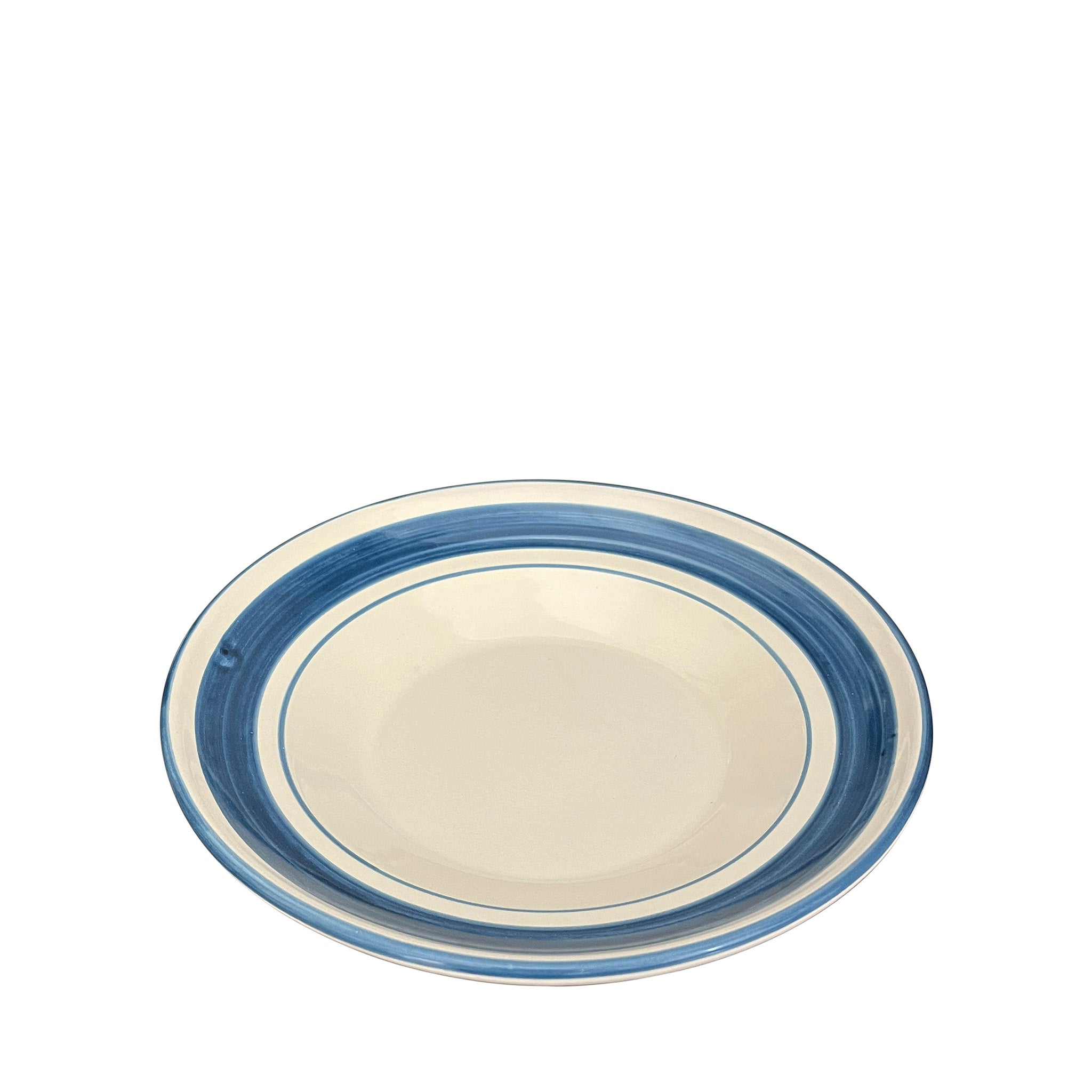 The Benvenuti Main Plate exhibits a simplicity and classic form, with its proportions, shape and symmetry. A specific size of brush has been selected for each of its hand-painted lines; on closer observation its painterly style created by the hand and eye of the artisan can be admired.