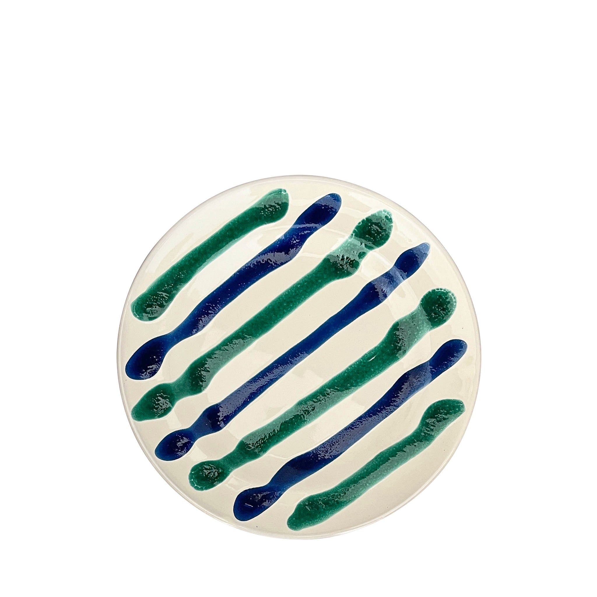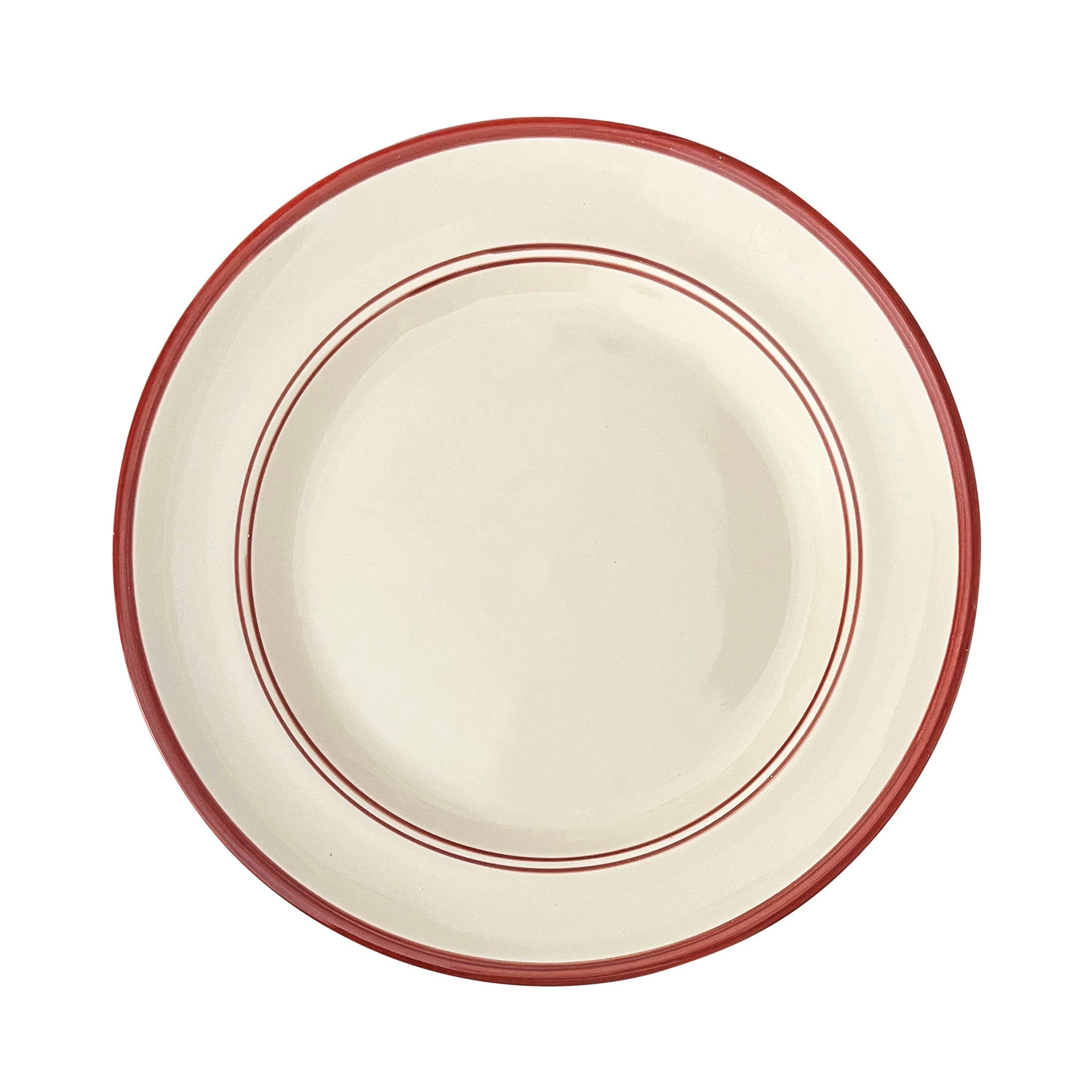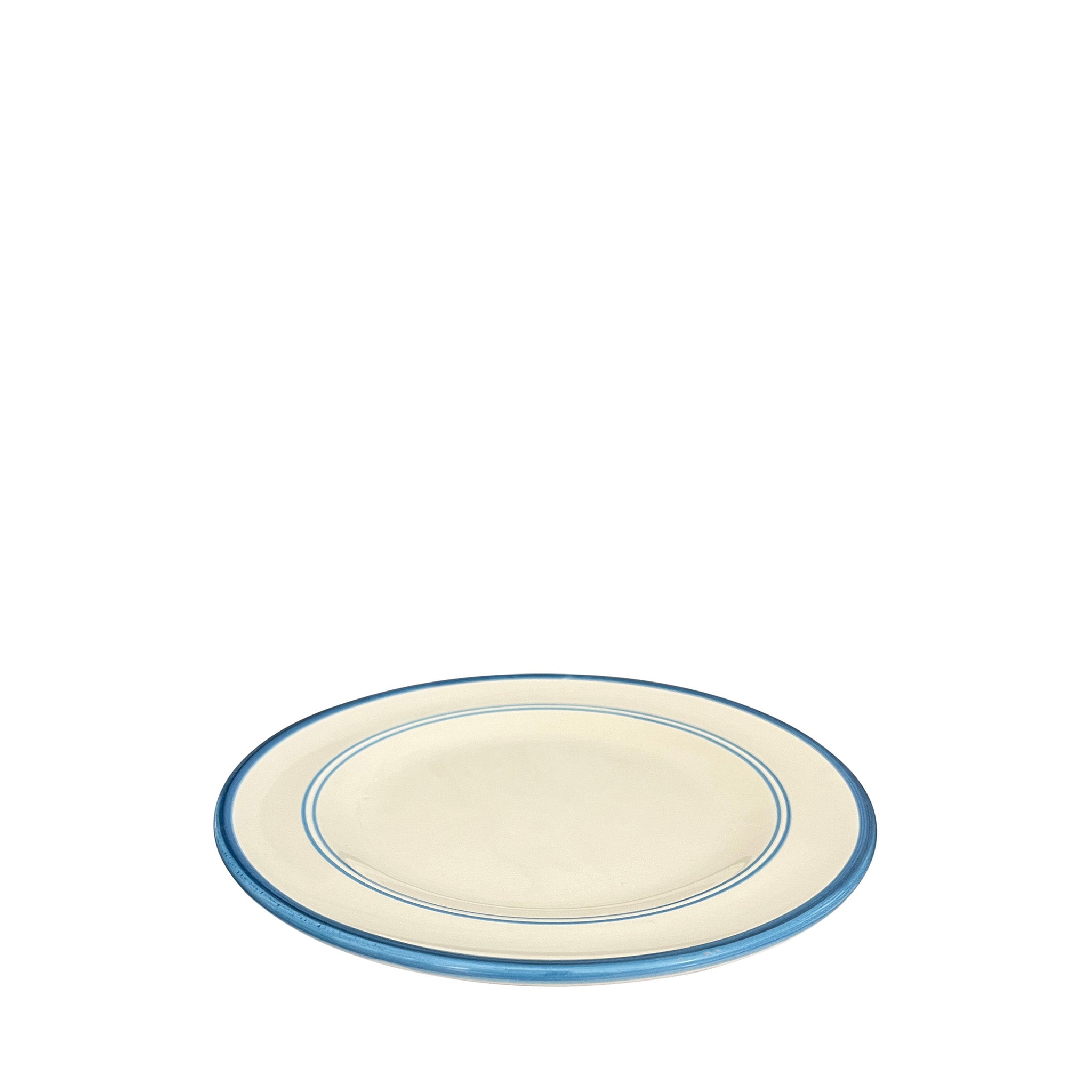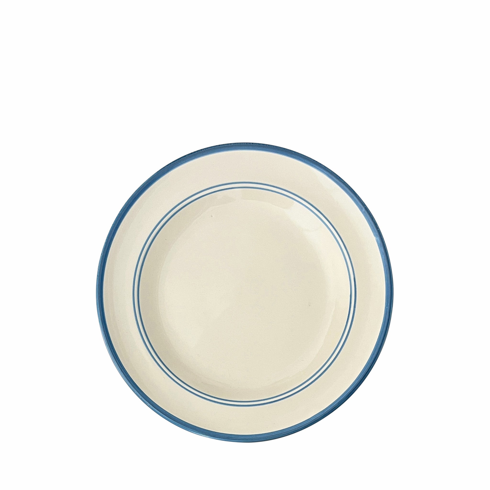 The Benvenuti Main Plate exhibits a simplicity and classic form, with its proportions, shape and symmetry. A specific size of brush has been selected for each of its hand-painted lines; on closer observation its painterly style created by the hand and eye of the artisan can be admired.