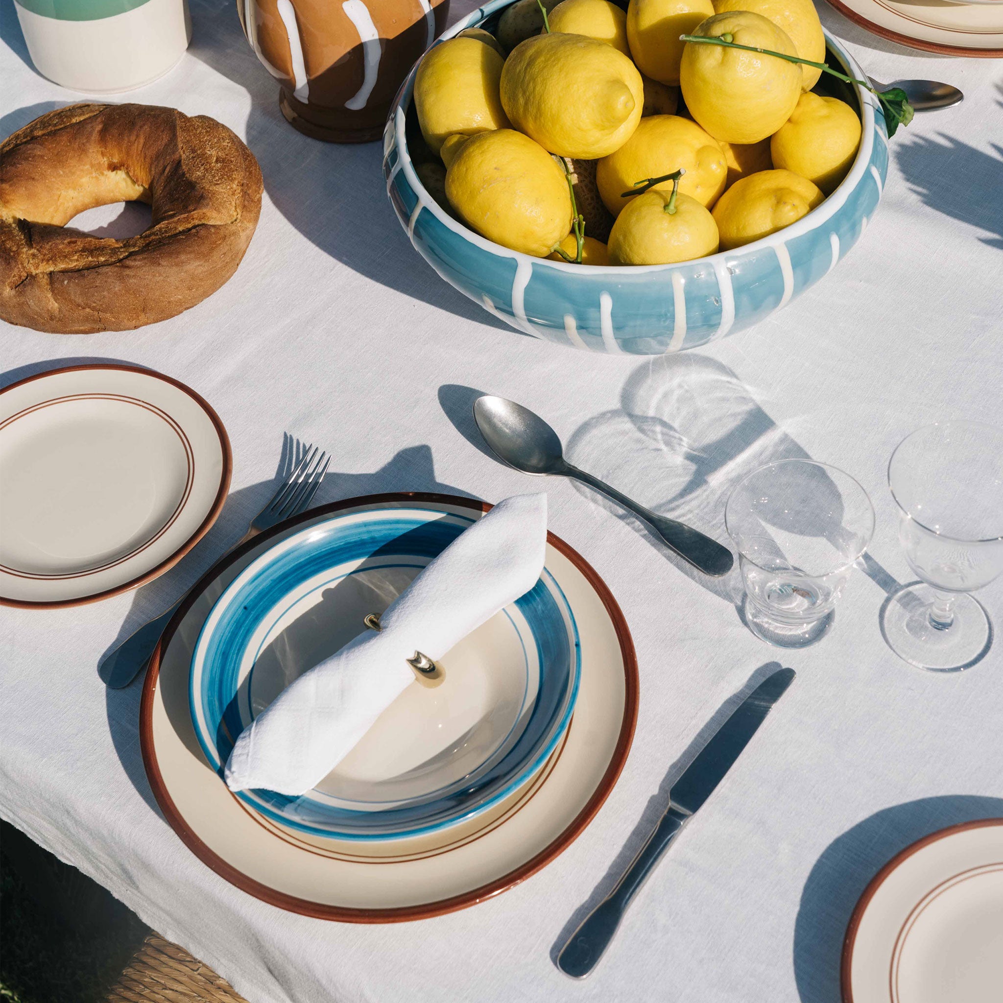The Benvenuti Ceramic Pasta Bowl has been hand painted and made by artisans. This luminous piece has been inspired by the alluring Mediterranean Sea and will enhance any entertaining occasion.