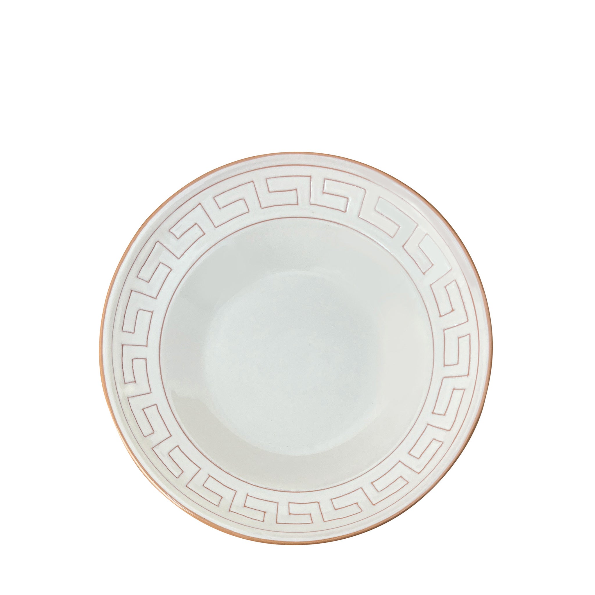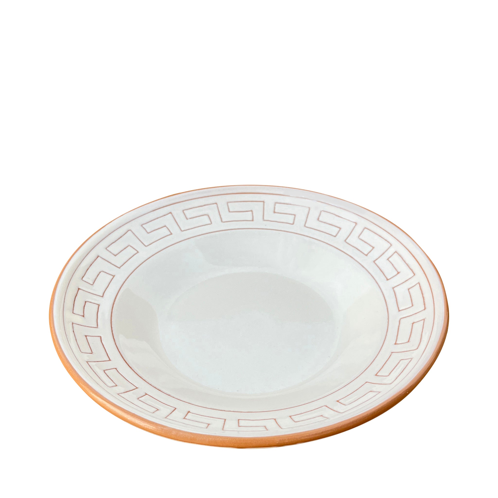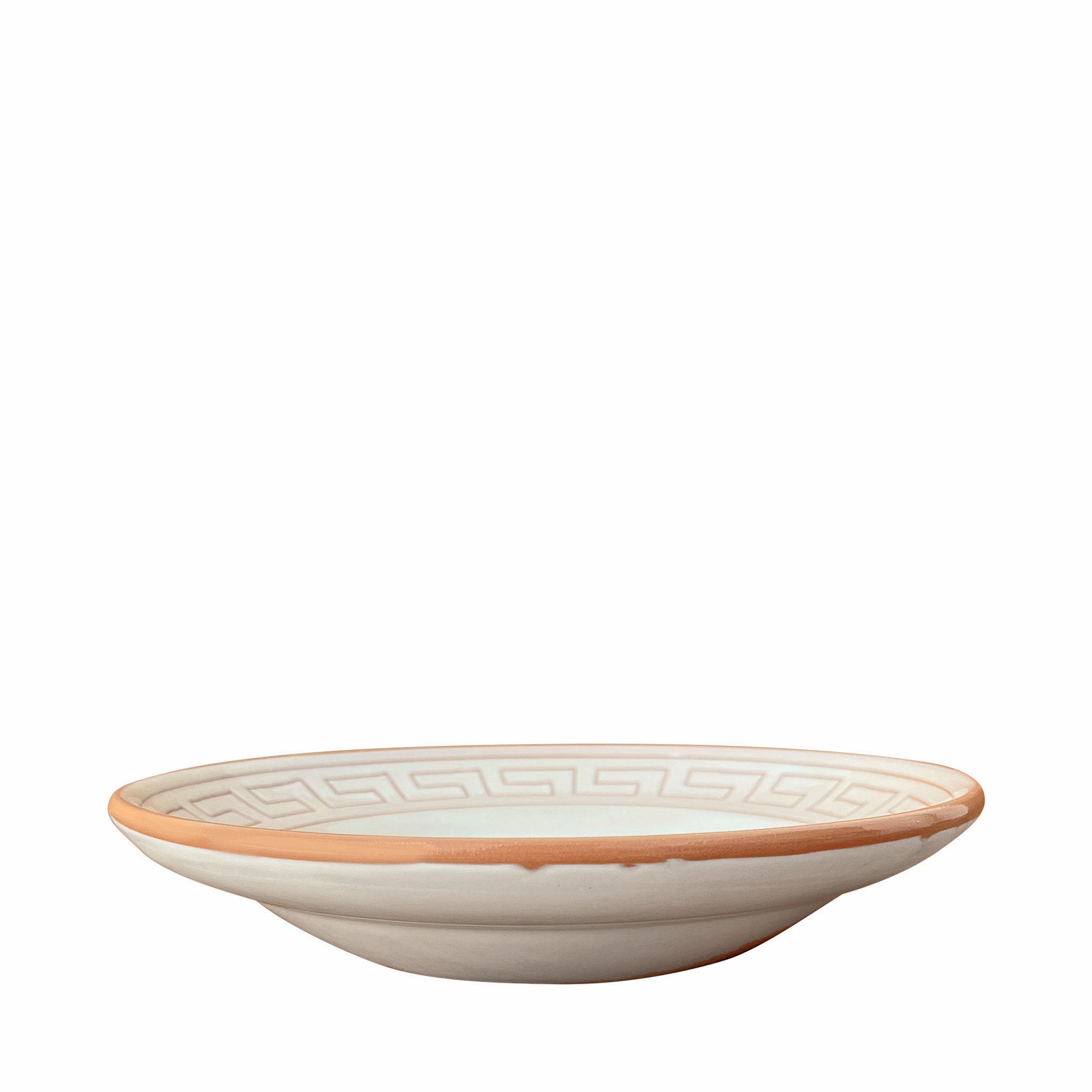 The Athina Ceramic Pasta Bowl has been hand-etched by artisans with a meandros Greek key motif. An entertaining essential for elevated long-table occasions.