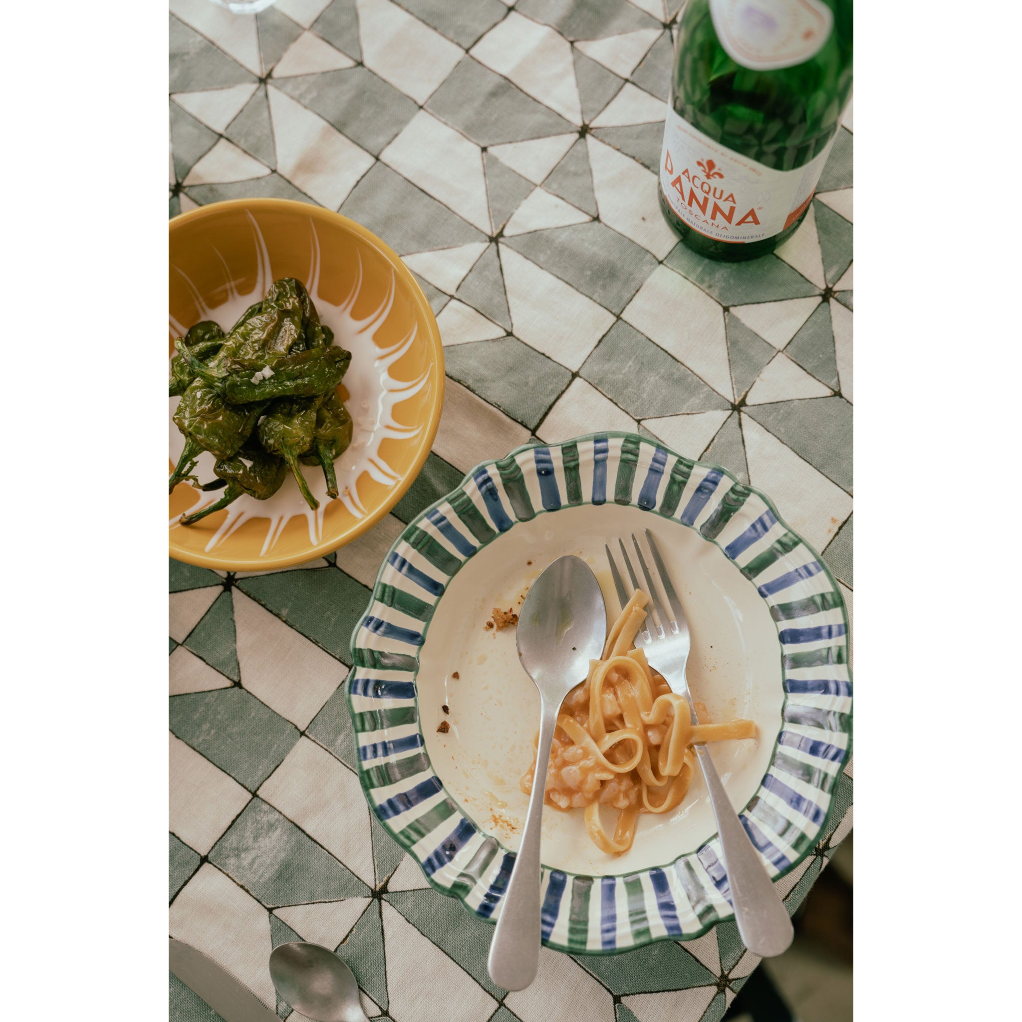 Inspired by the quintessential striped parasols and awnings of the Italian coastline, the Lido Pasta Bowl is designed for serving pastas, soups, risottos, or side salads. Hand-painted in Puglia, Italy, each piece is individually crafted and one-of-a-kind.