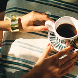 Inspired by the seascapes of Puglia and the quintessential Italian striped shopfront awnings; our sea-green striped tea/coffee cup and saucer has been designed to elevate your morning coffee ceremony. Hand-painted and made in Puglia, Italy, each piece is unique and one-of-a-kind.