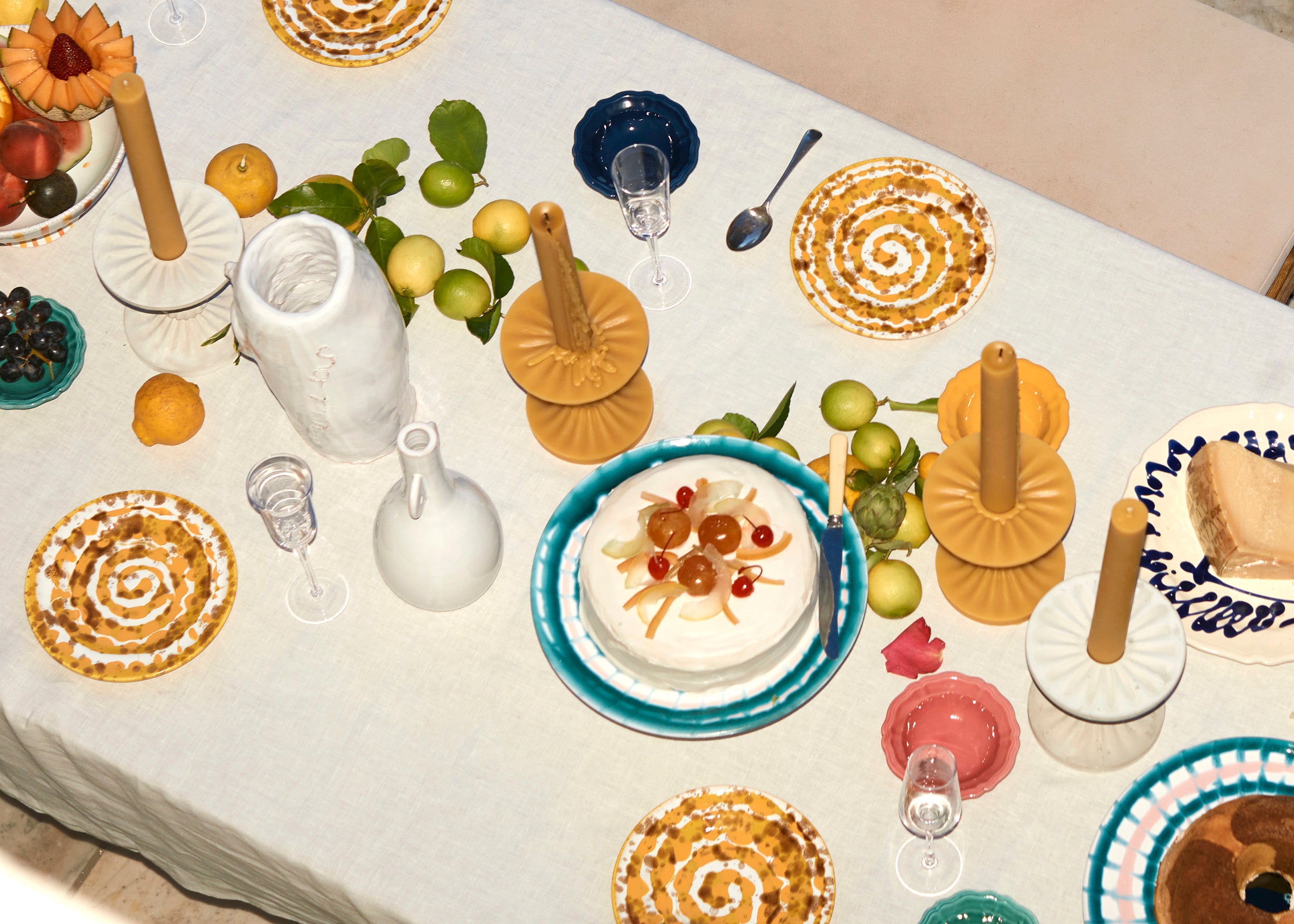 The Spirale Ceramic Side Plate is hand-painted and made in Puglia, Italy. Each piece is unique and brings joyous colour and design to the table. Designed as a entree or side plate, it also suited perfectly as a dessert or aperitivo plate.